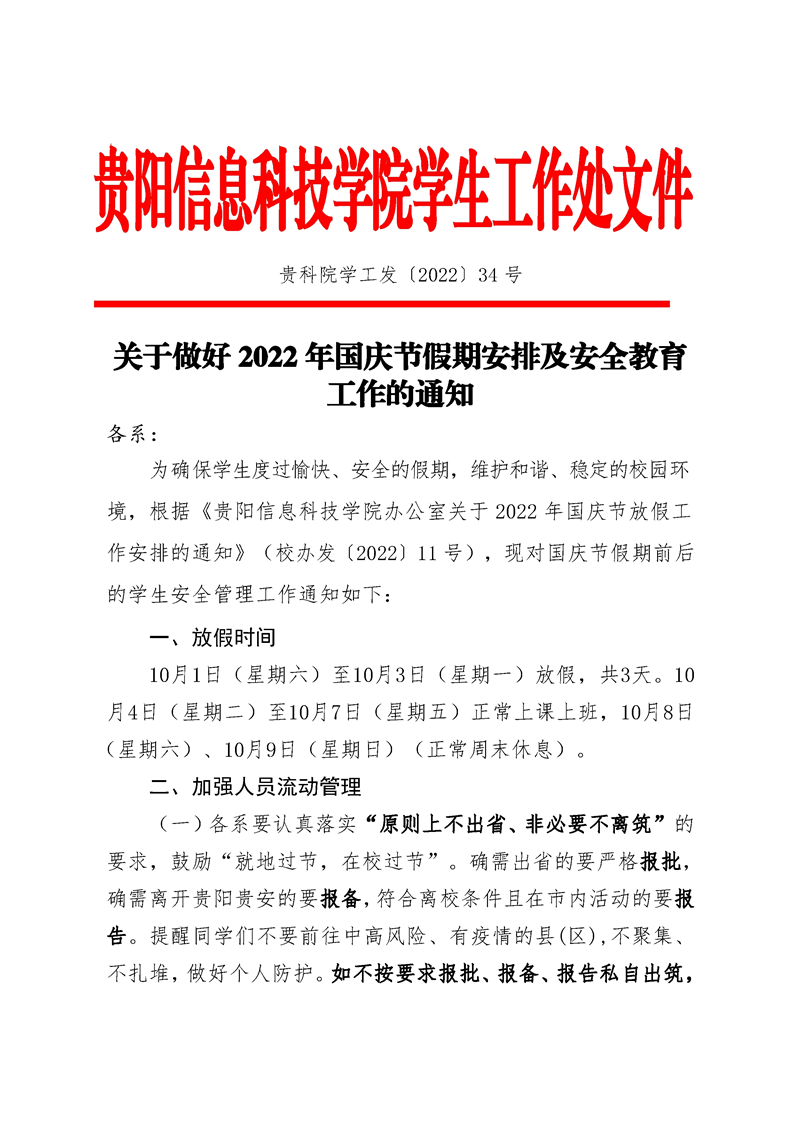 【贵科院学工发〔2022〕34号】关于做好2022年国庆节假期安排及安全教育工作的通知.doc.zip
