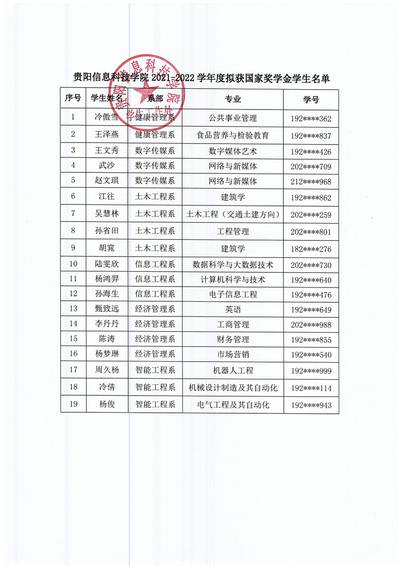 pp电子官方网站关于2021-2022学年度拟获国家奖学金学生名单公示