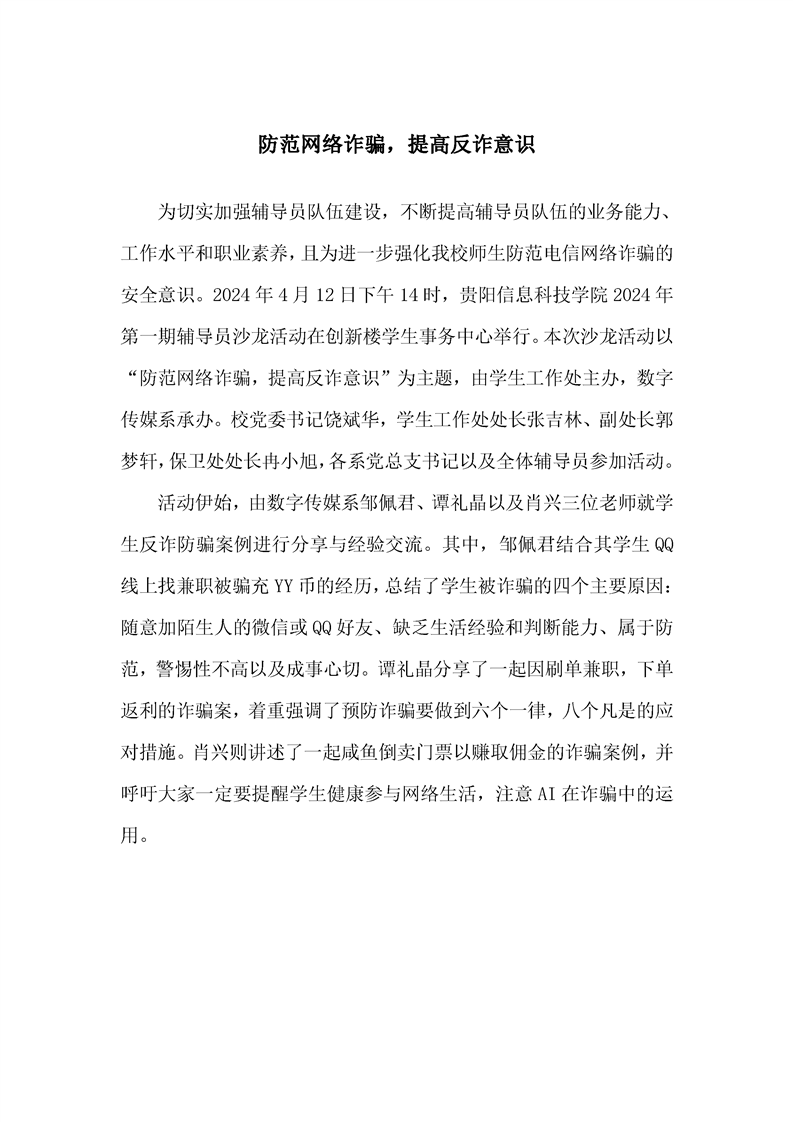 防范网络诈骗,提高反诈意识-2024第一期辅导沙龙活动
