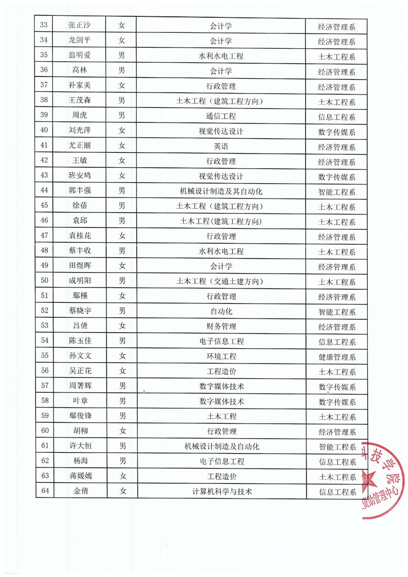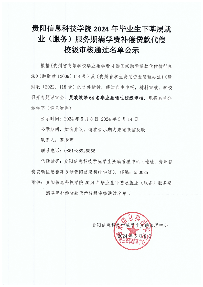pp电子官方网站2024年毕业生下基层就业(服务)服务期满学费补偿贷款代偿校级审核通过名单公示
