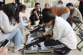 2024年6月1日下午,组织知识竞赛前50名获奖学生前往花溪区某真人CS基地开展国防素质拓展活动,期间组织95式自动步枪模型拆解教学,让学生们感受到浓浓的军事氛围,增强国防教育的趣味化。