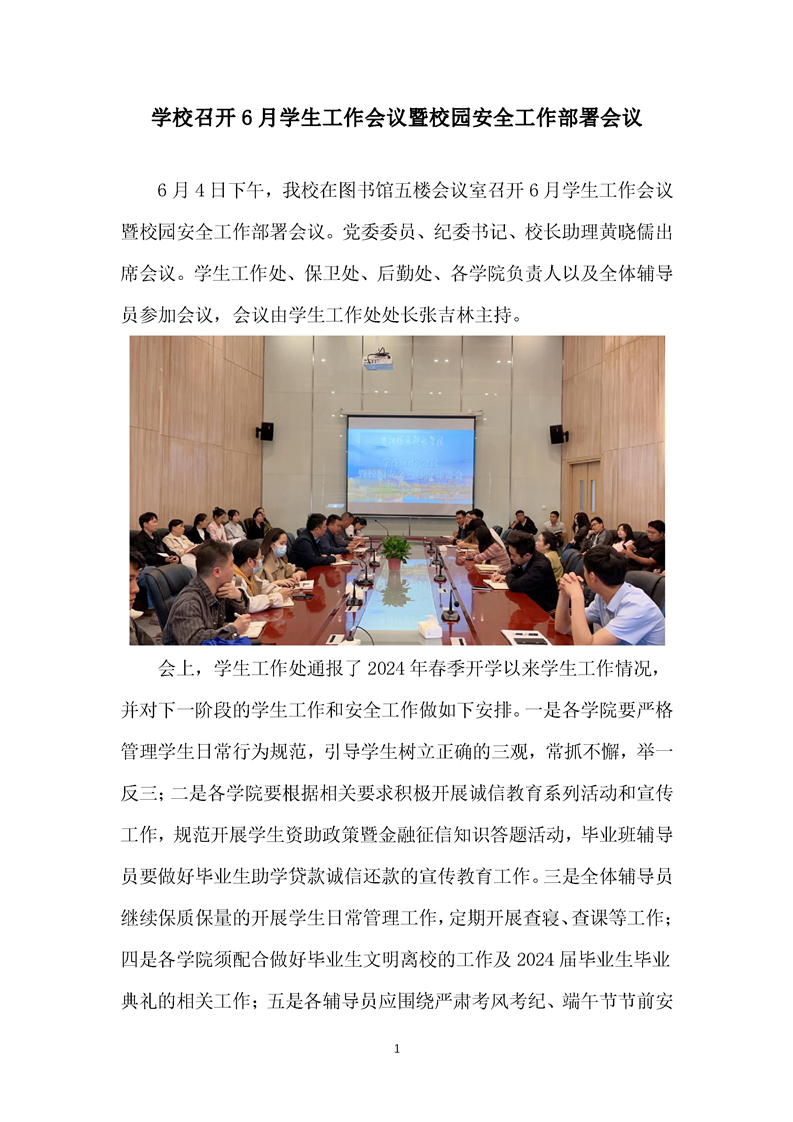 学校召开6月学生工作会议暨校园安全工作部署会议