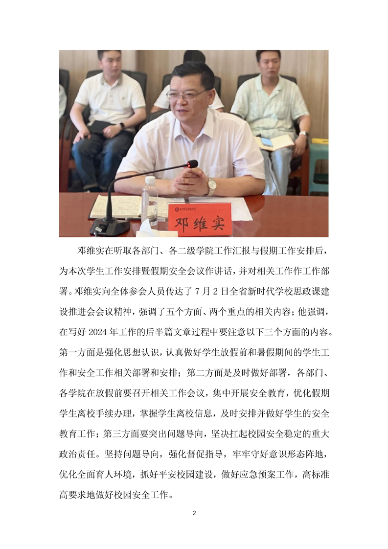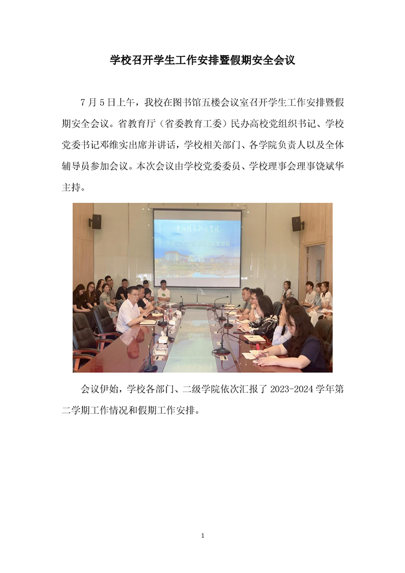 学校召开学生工作安排暨假期安全会议