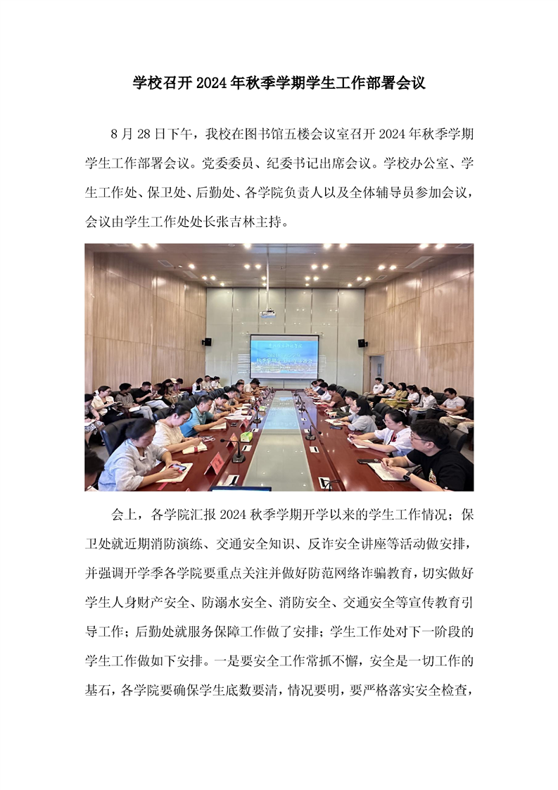 学校召开2024年秋季学期学生工作部署