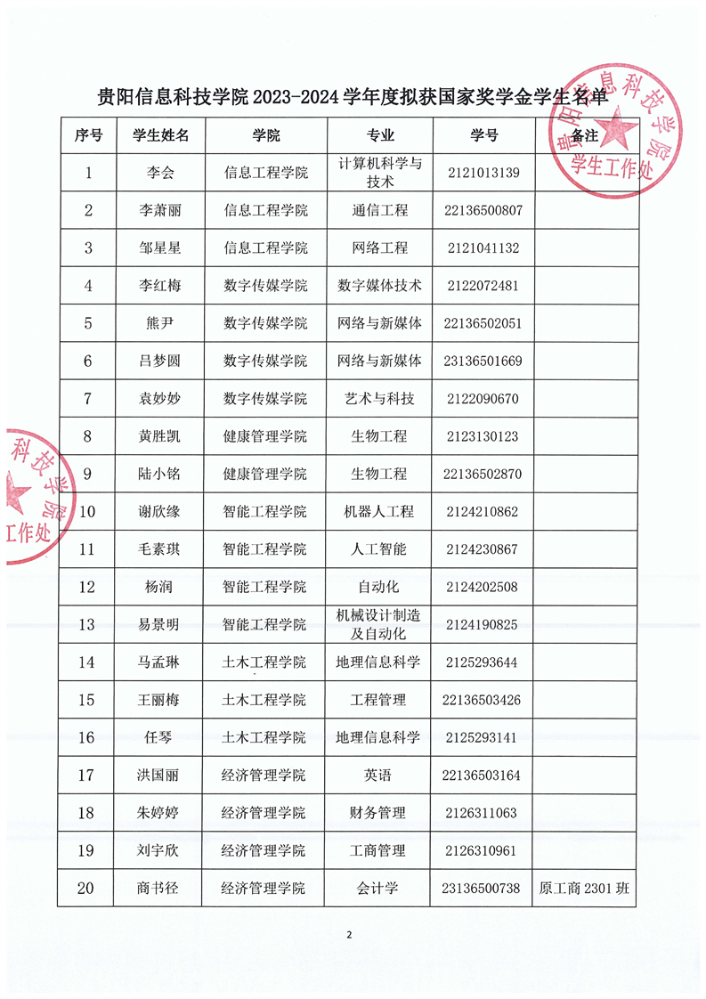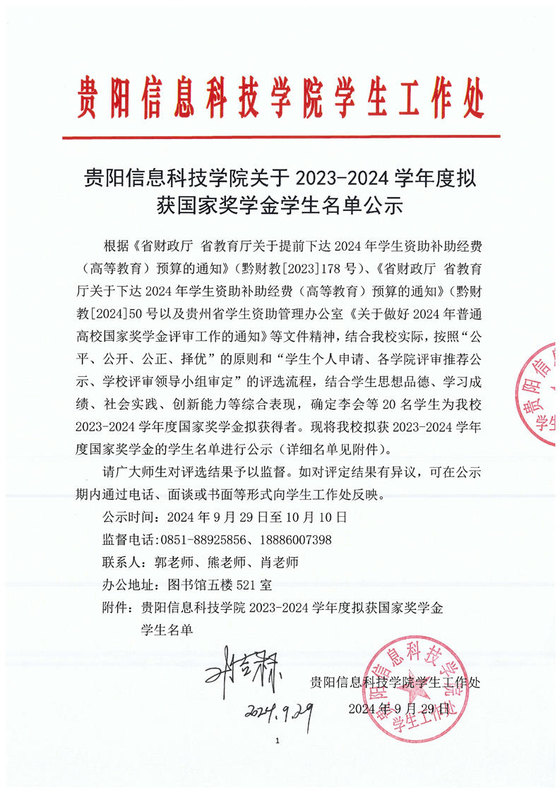pp电子官方网站关于2023-2024学年度拟获国家奖学金学生名单公示