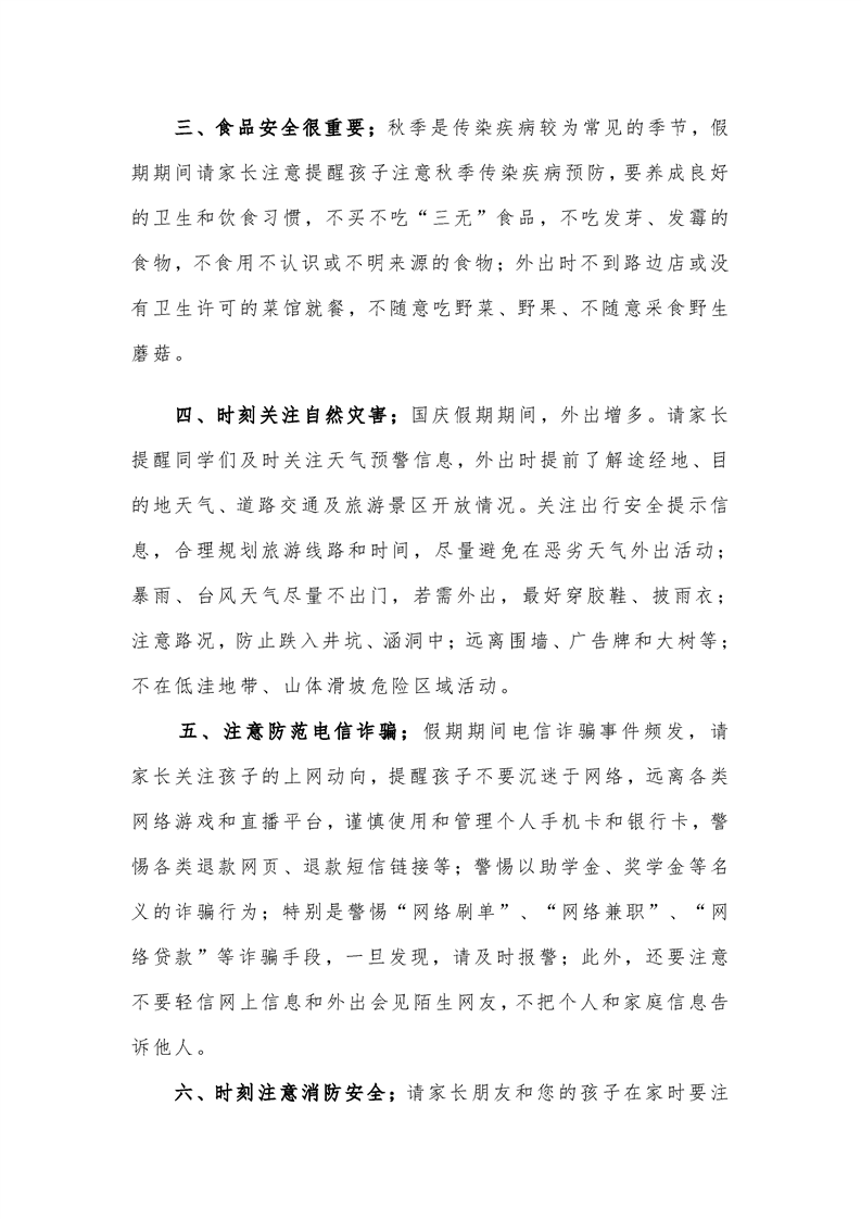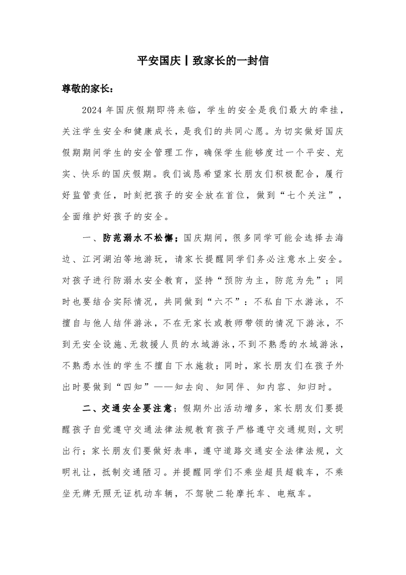 平安国庆丨致家长的一封信