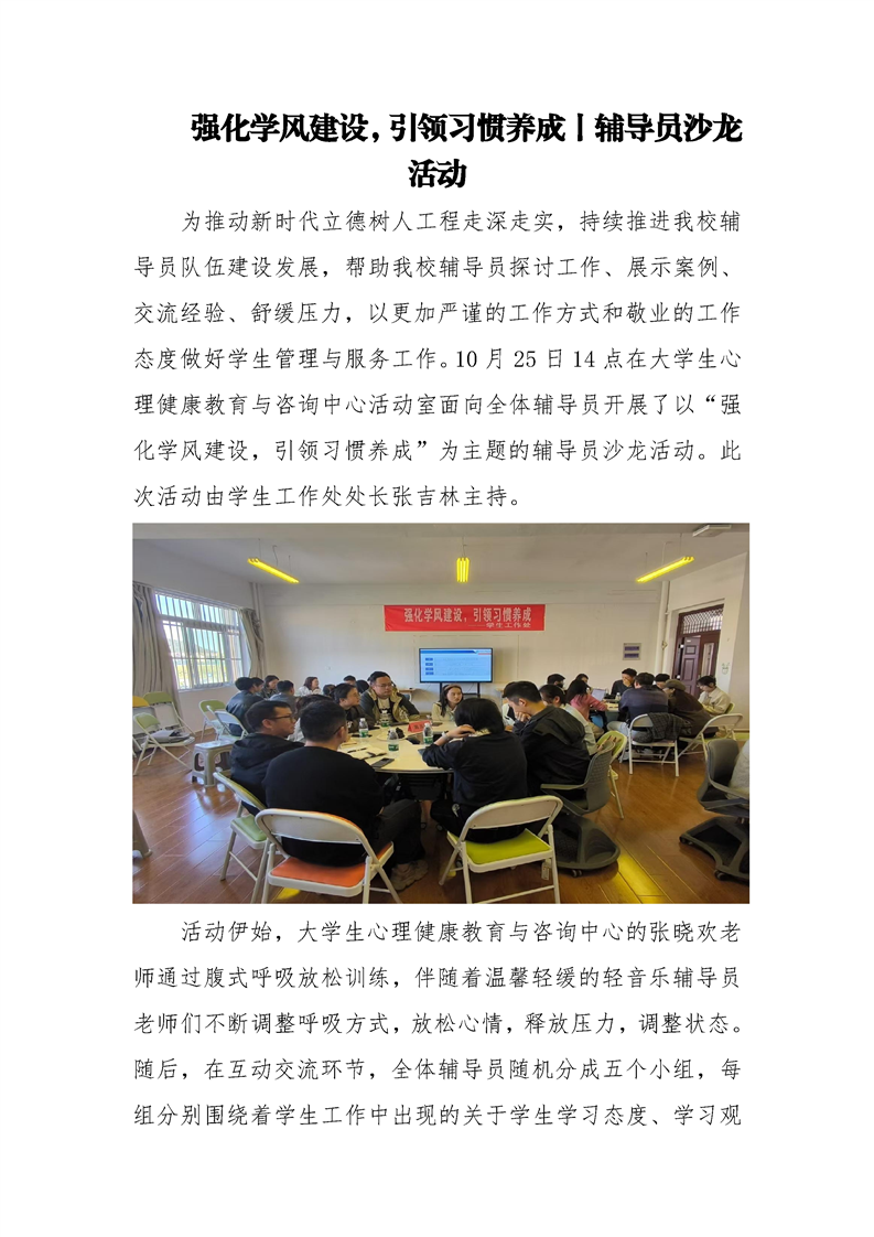 强化学风建设,引领习惯养成丨辅导员沙龙活动