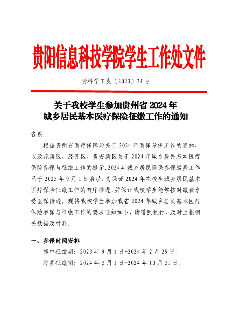 关于pp电子学生参加贵州省2024年城乡居民基本医疗保险征缴工作的通知