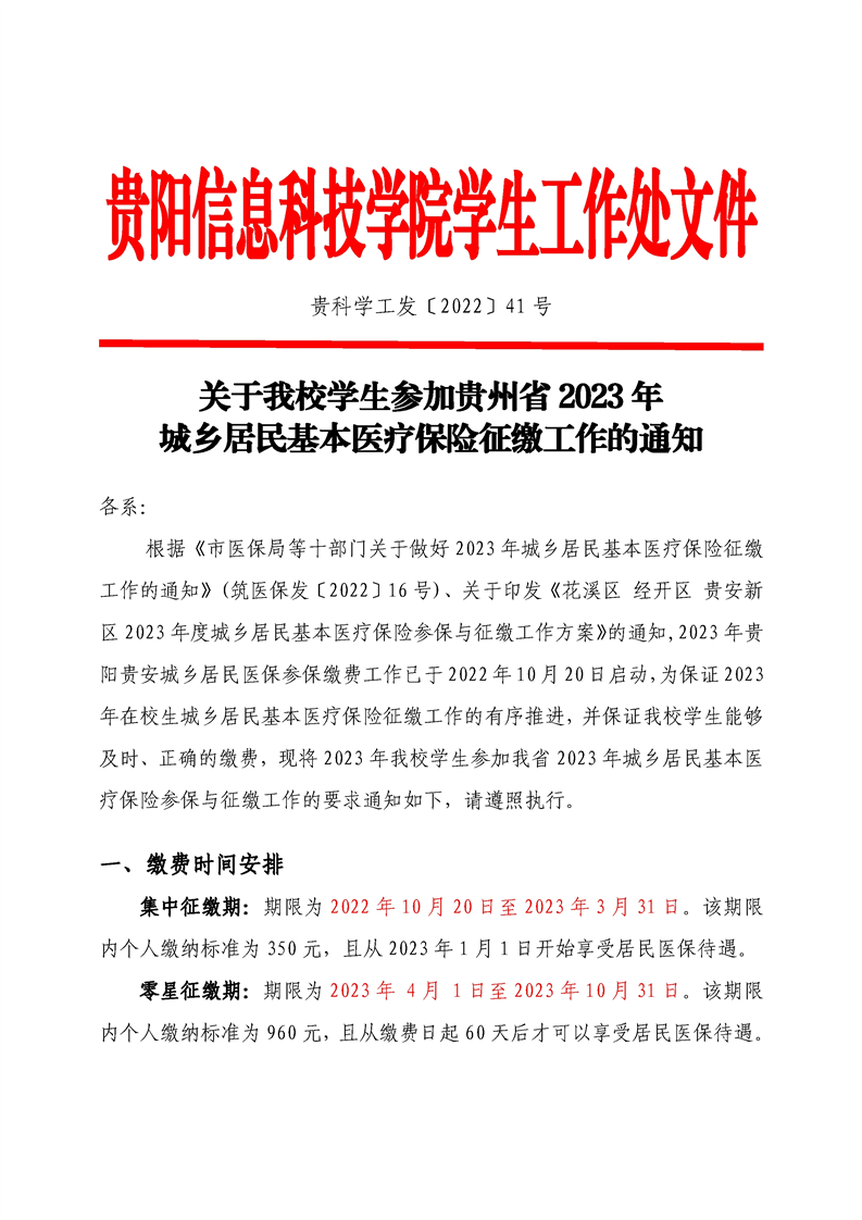 关于pp电子学生参加贵州省2023年城乡居民基本医疗保险征缴工作的通知