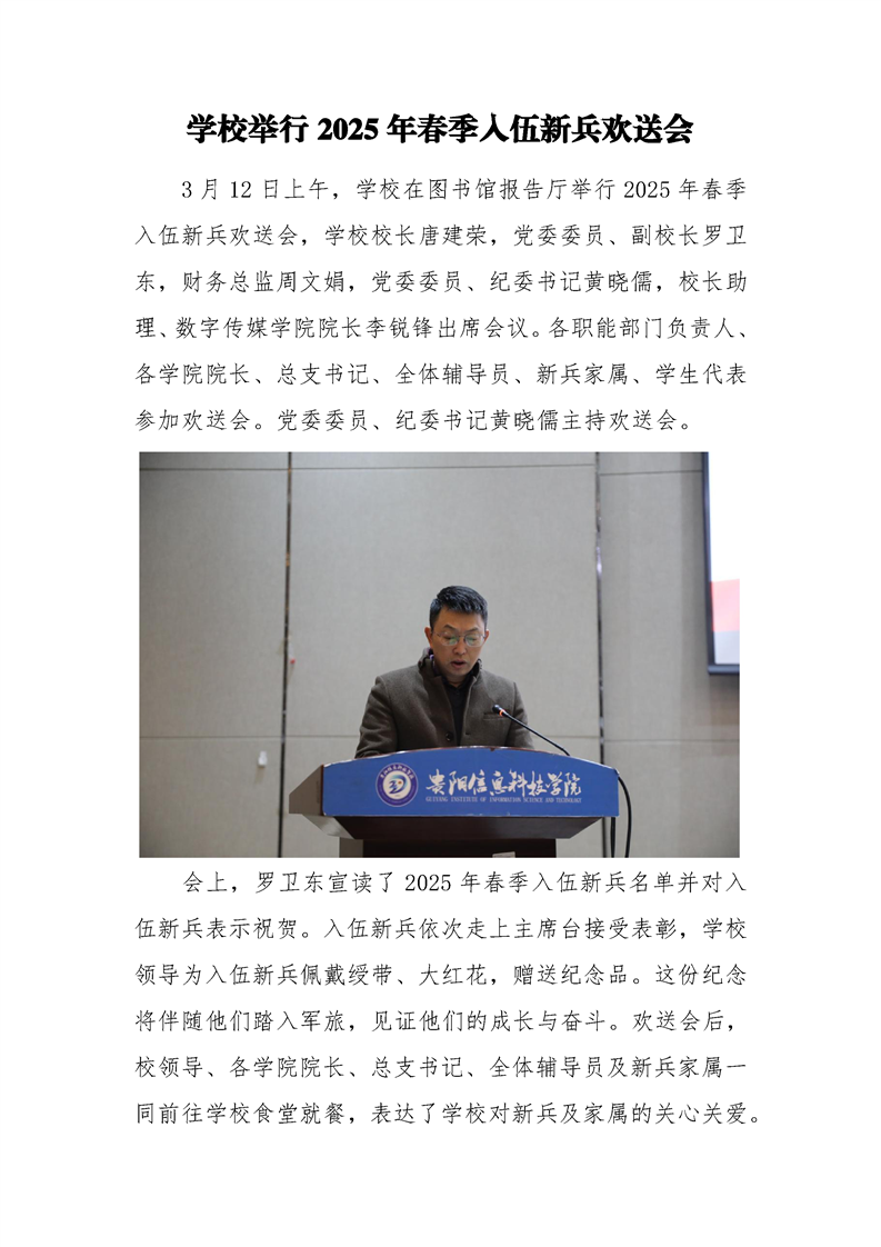 学校教师代表看望慰问2025年春季参军入伍役前集训新兵