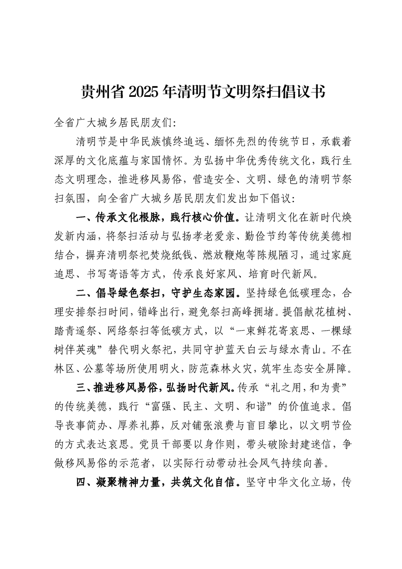 贵州省2025年清明节文明祭扫倡议书