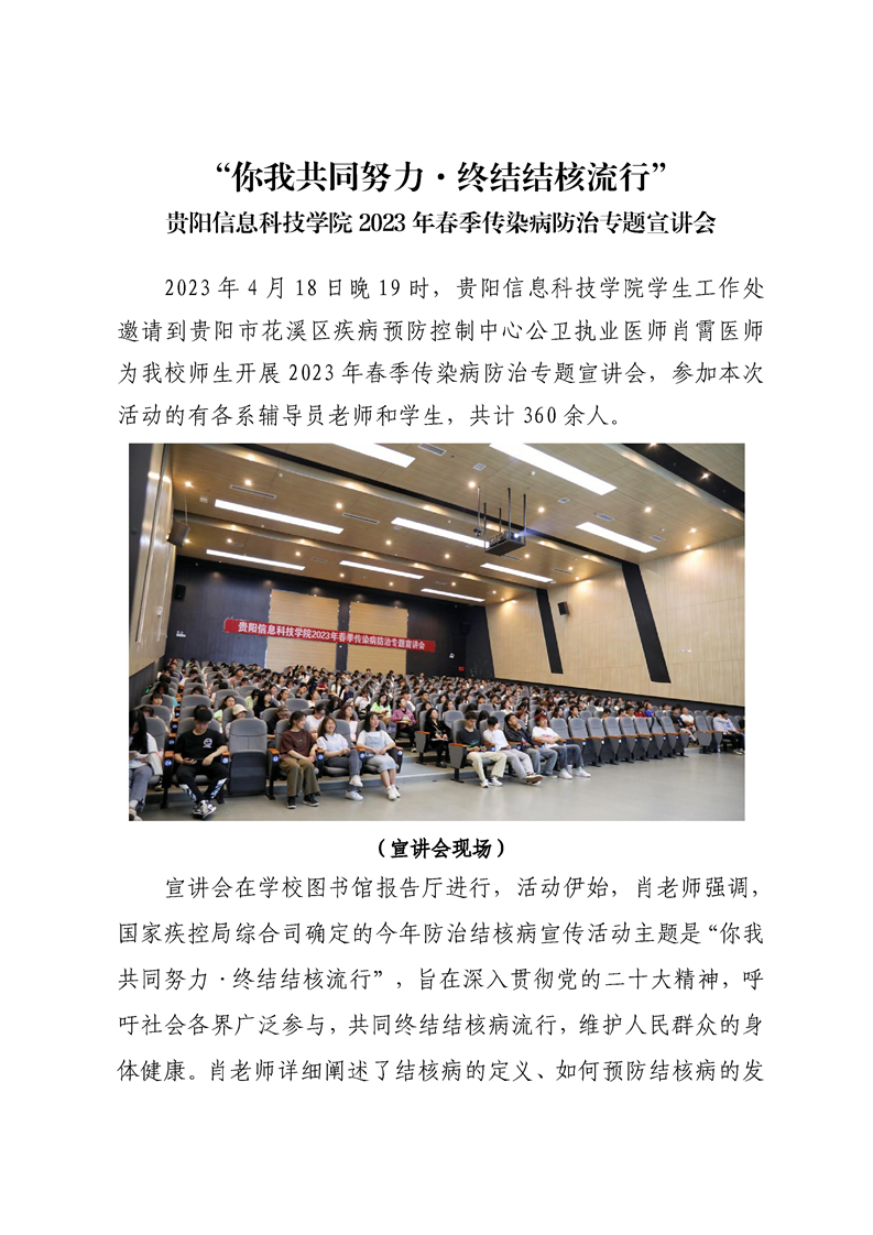“你我共同努力·终结结核流行”pp电子官方网站2023年春季传染病防治专题宣讲会