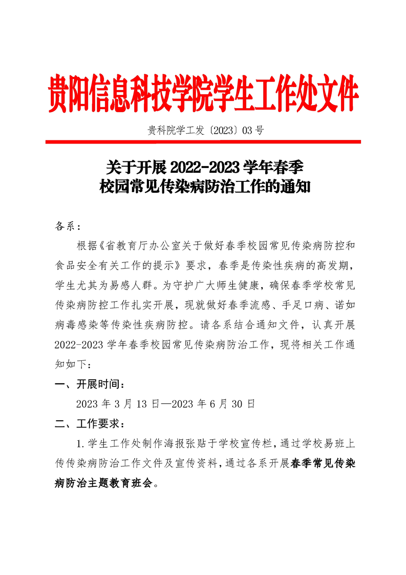 关于开展 2022-2023 学年春季 校园常见传染病防治工作的通知