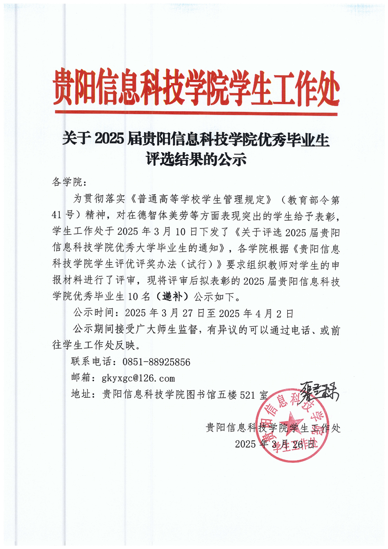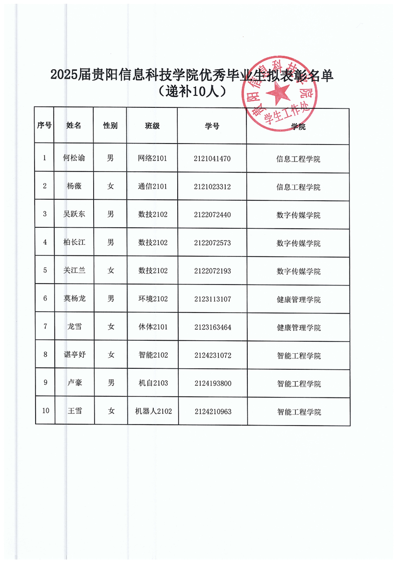 2025届pp电子官方网站优秀毕业生表彰的10名学生(递补)公示