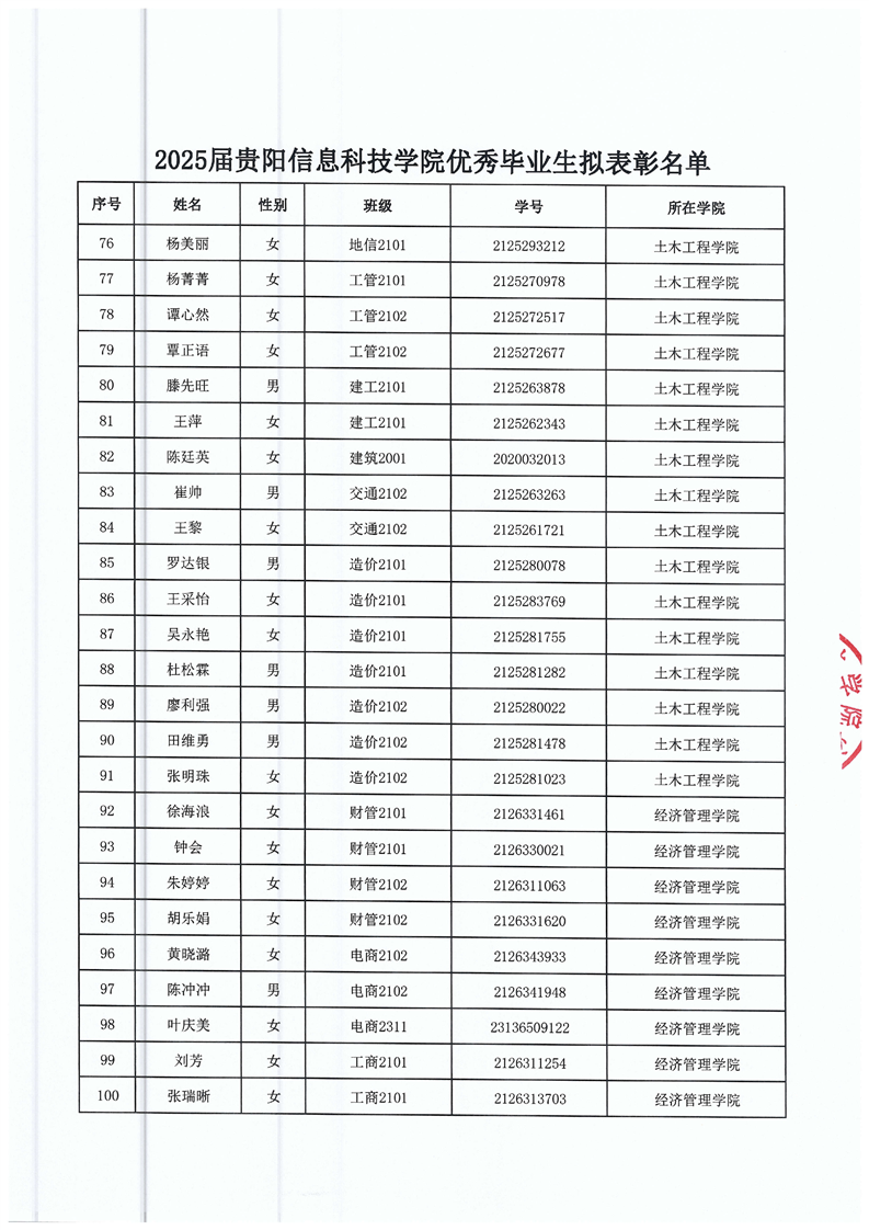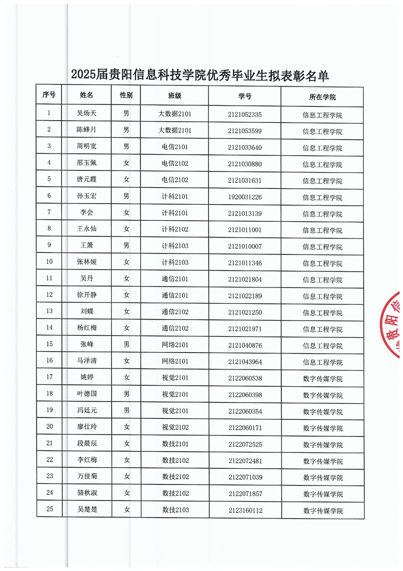 2025届pp电子官方网站优秀毕业生表彰的10名学生(递补)公示