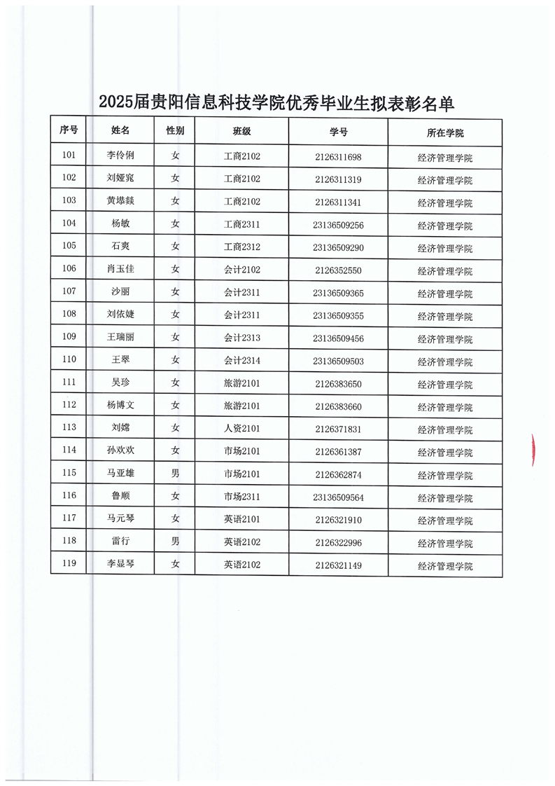 2025届pp电子官方网站优秀毕业生表彰的119名学生公示
