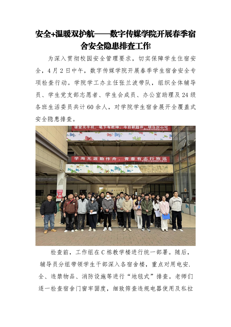 安全+温暖双护航——数字传媒学院开展春季宿舍安全隐患排查工作
