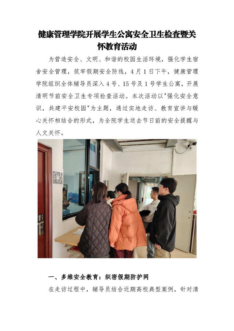 健康管理学院开展学生公寓安全卫生检查暨关怀教育活动