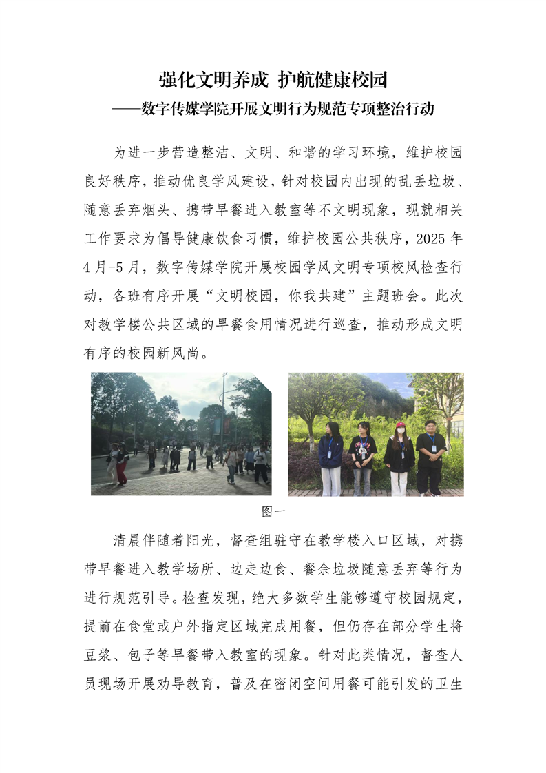 强化文明养成 护航健康校园 ——数字传媒学院开展文明行为规范专项整治行动