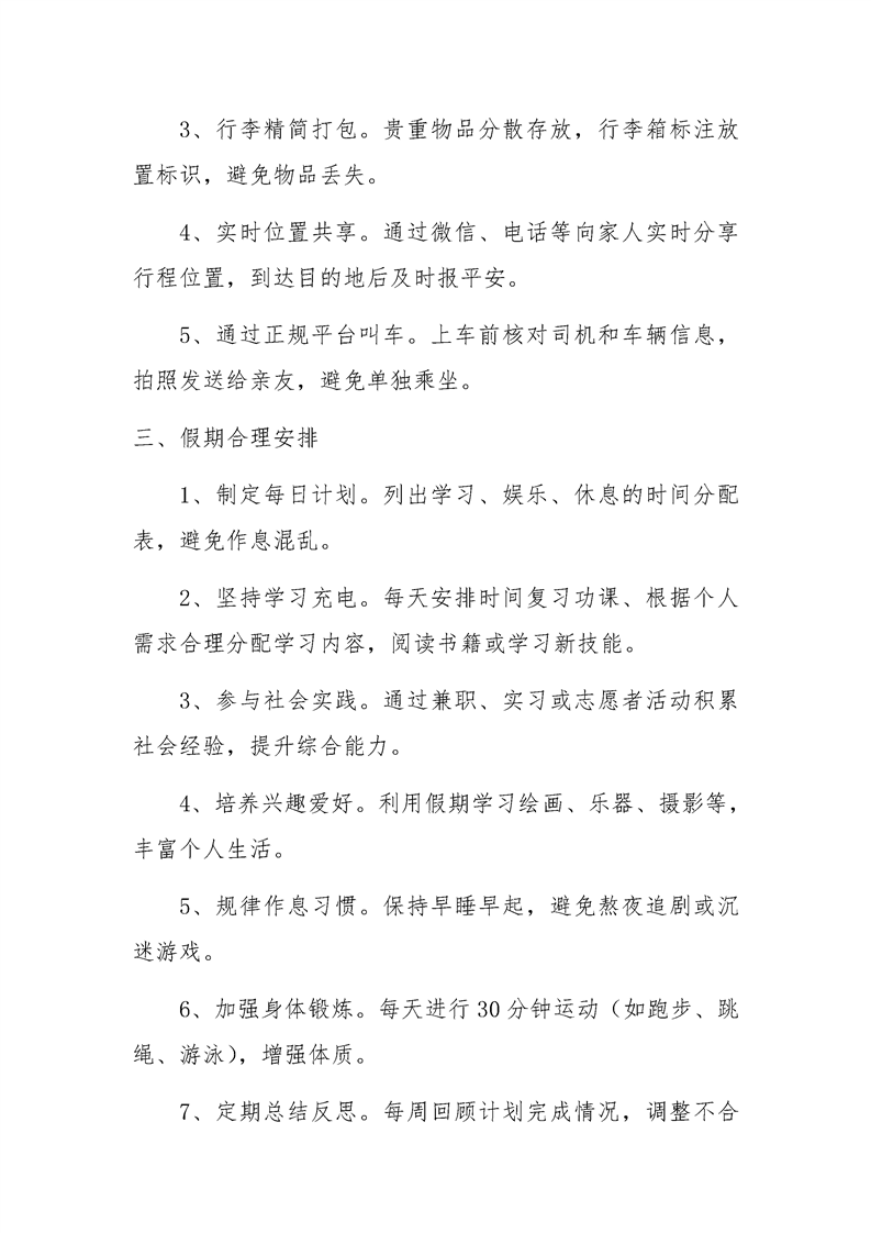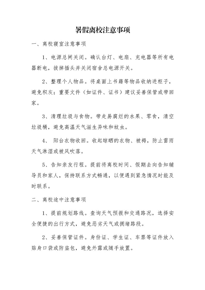 暑假离校注意事项