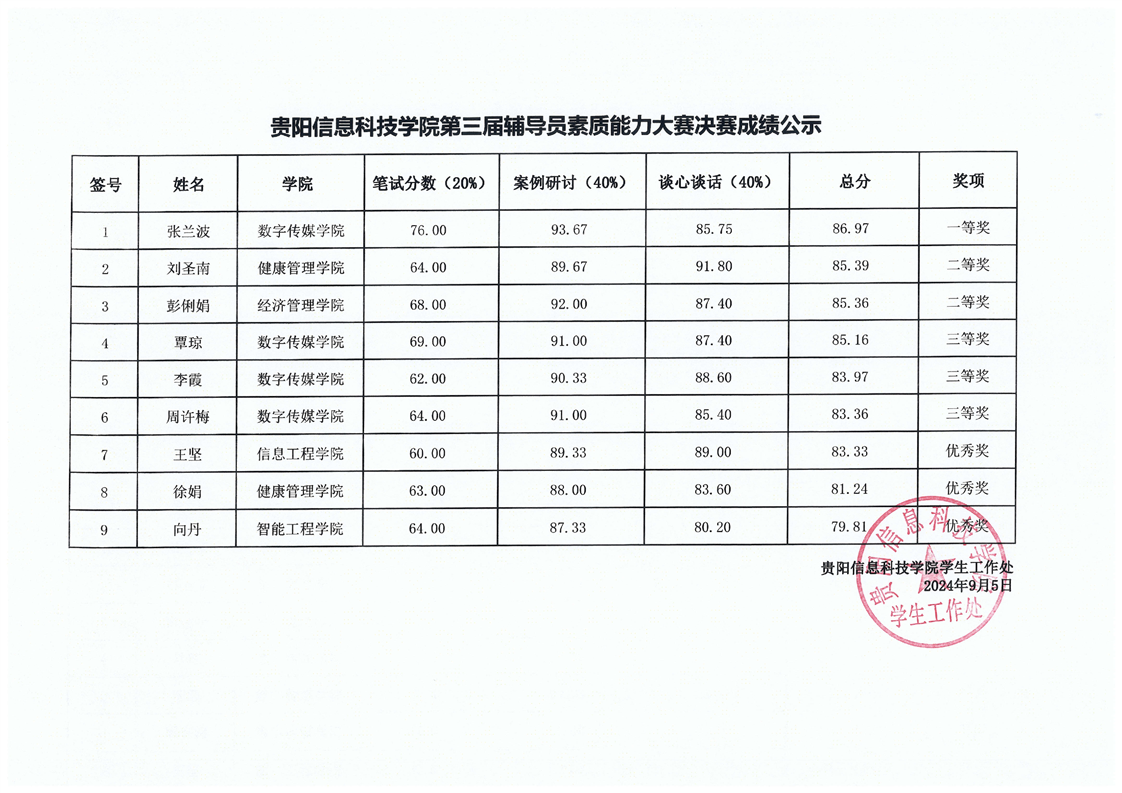 pp电子官方网站第四届辅导员素质能力大赛总成绩公示