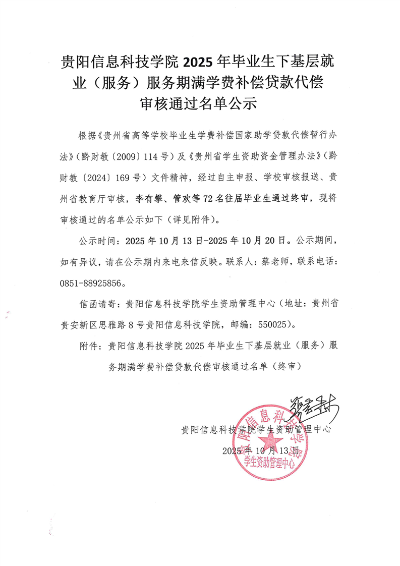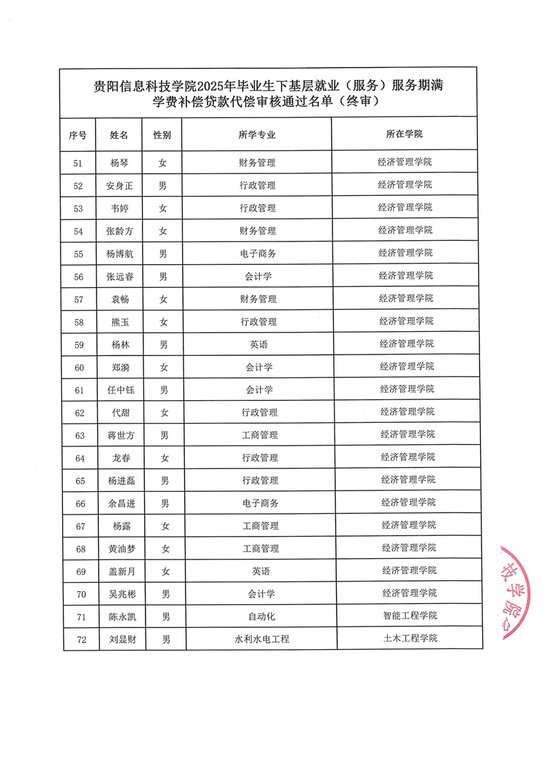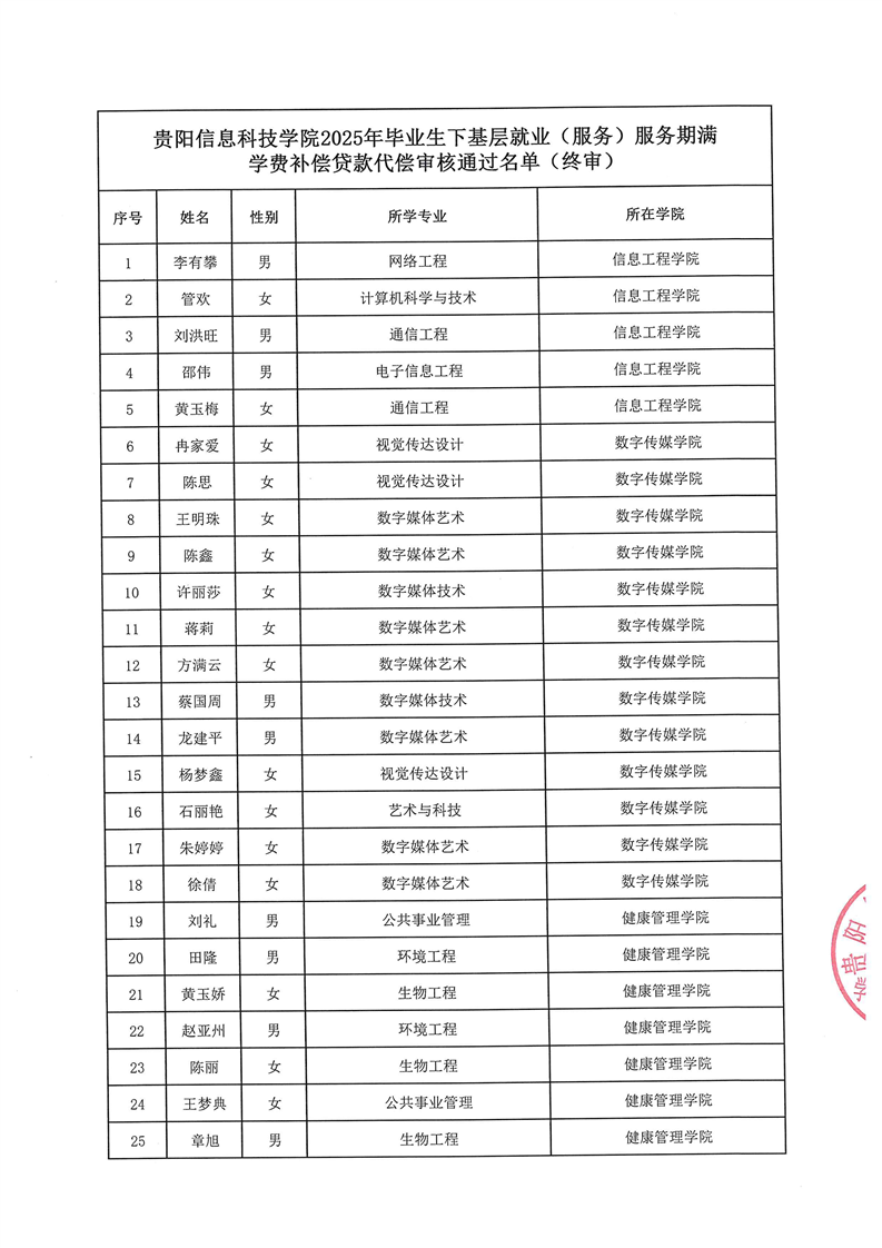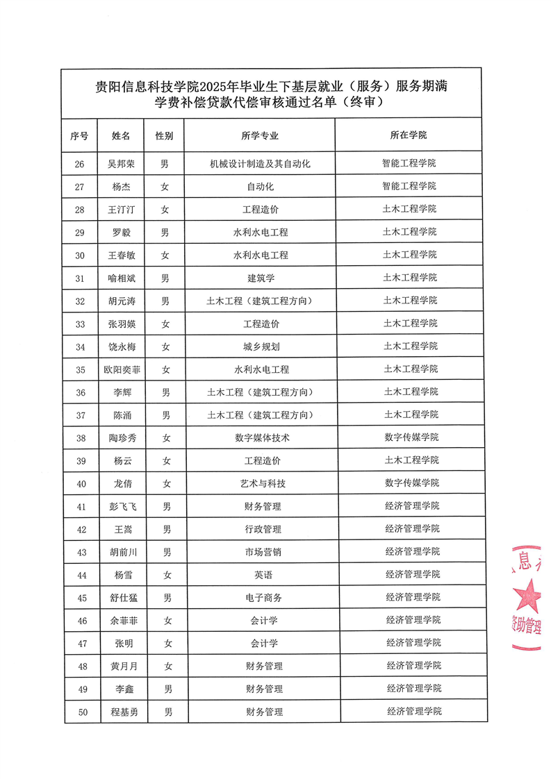 pp电子官方网站2025年毕业生下基层就业(服务)服务期满学费补偿贷款代偿 审核通过名单公示