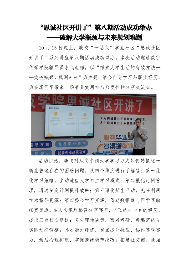 “思诚社区开讲了”第八期活动成功举办 ——破解大学瓶颈与未来规划难题