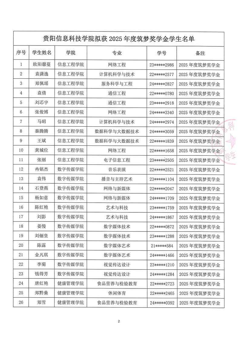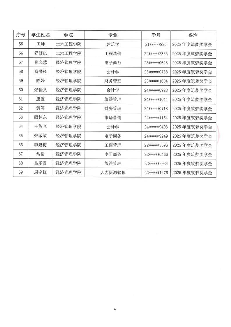 2024-2025学年国家励志奖学金获得学生名单的公示