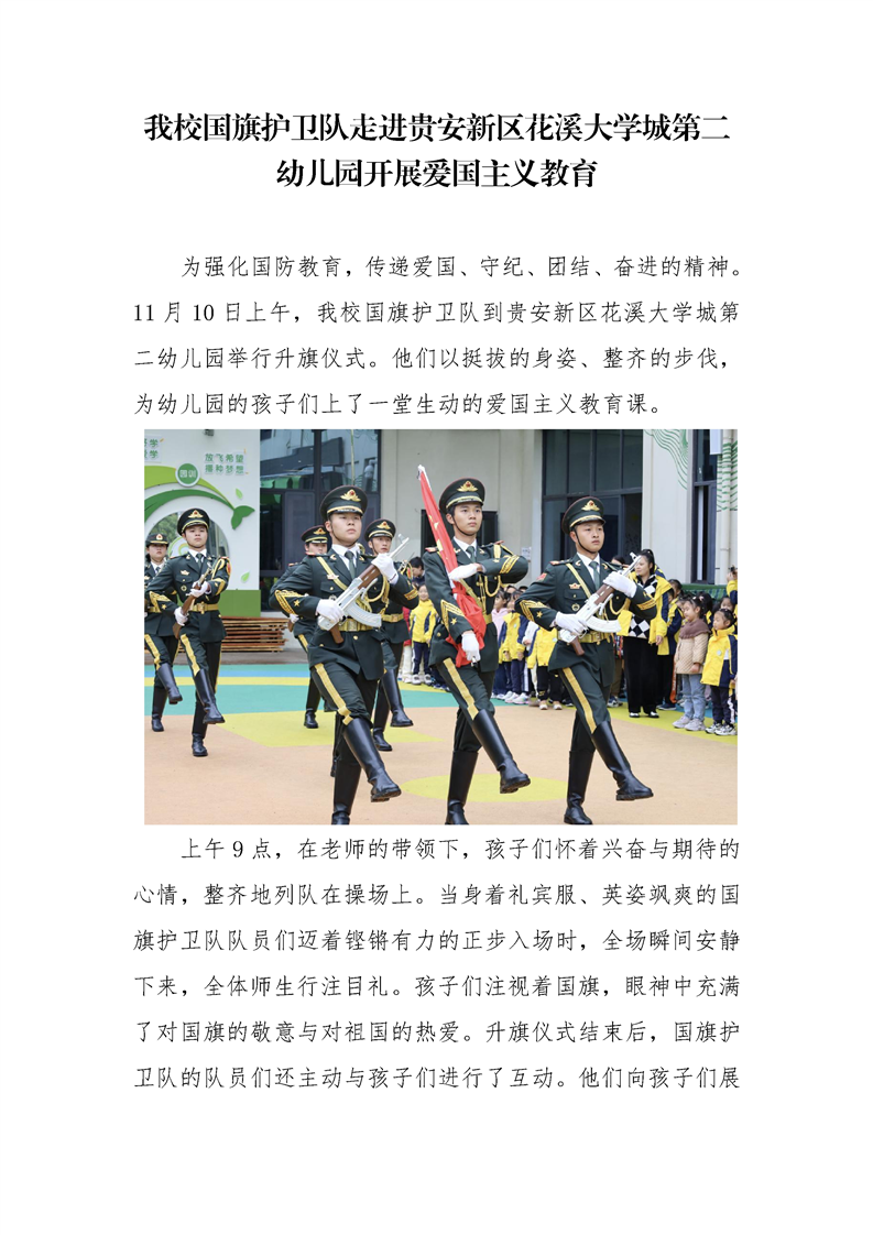 pp电子国旗护卫队走进贵安新区花溪大学城第二幼儿园开展爱国主义教育