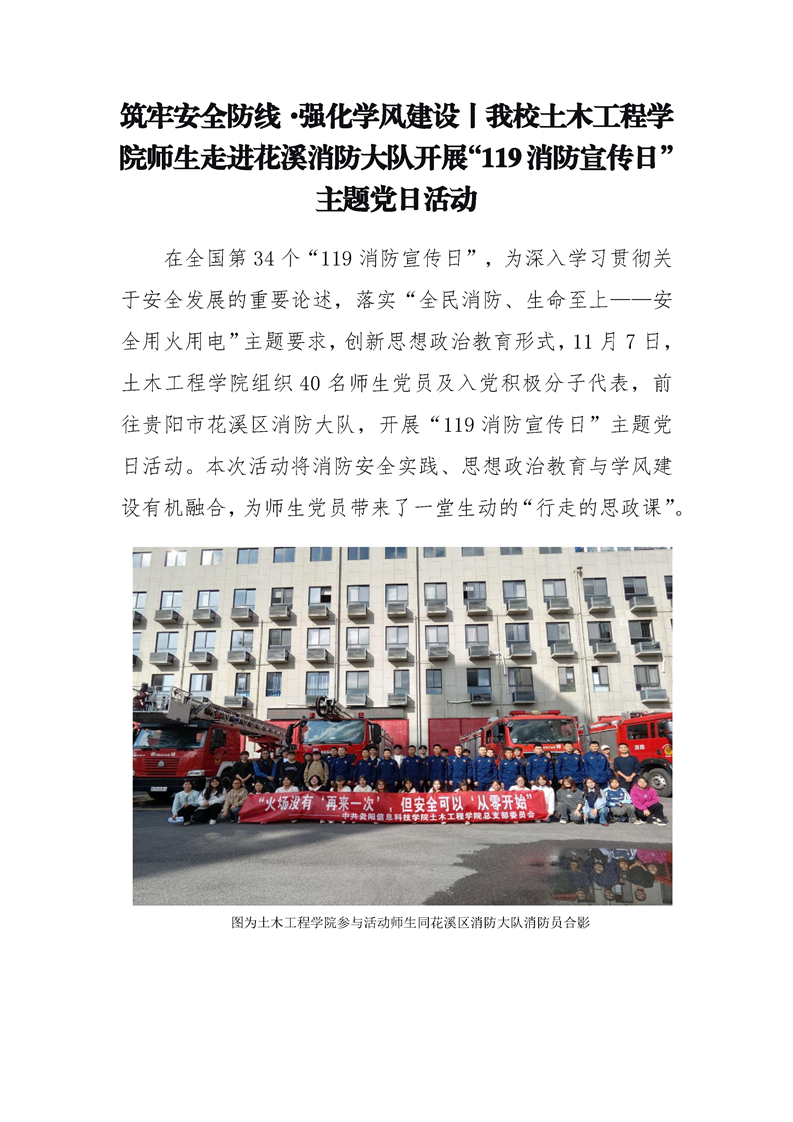 筑牢安全防线·强化学风建设丨pp电子土木工程学院师生走进花溪消防大队开展“119消防宣传日”主题党日活动