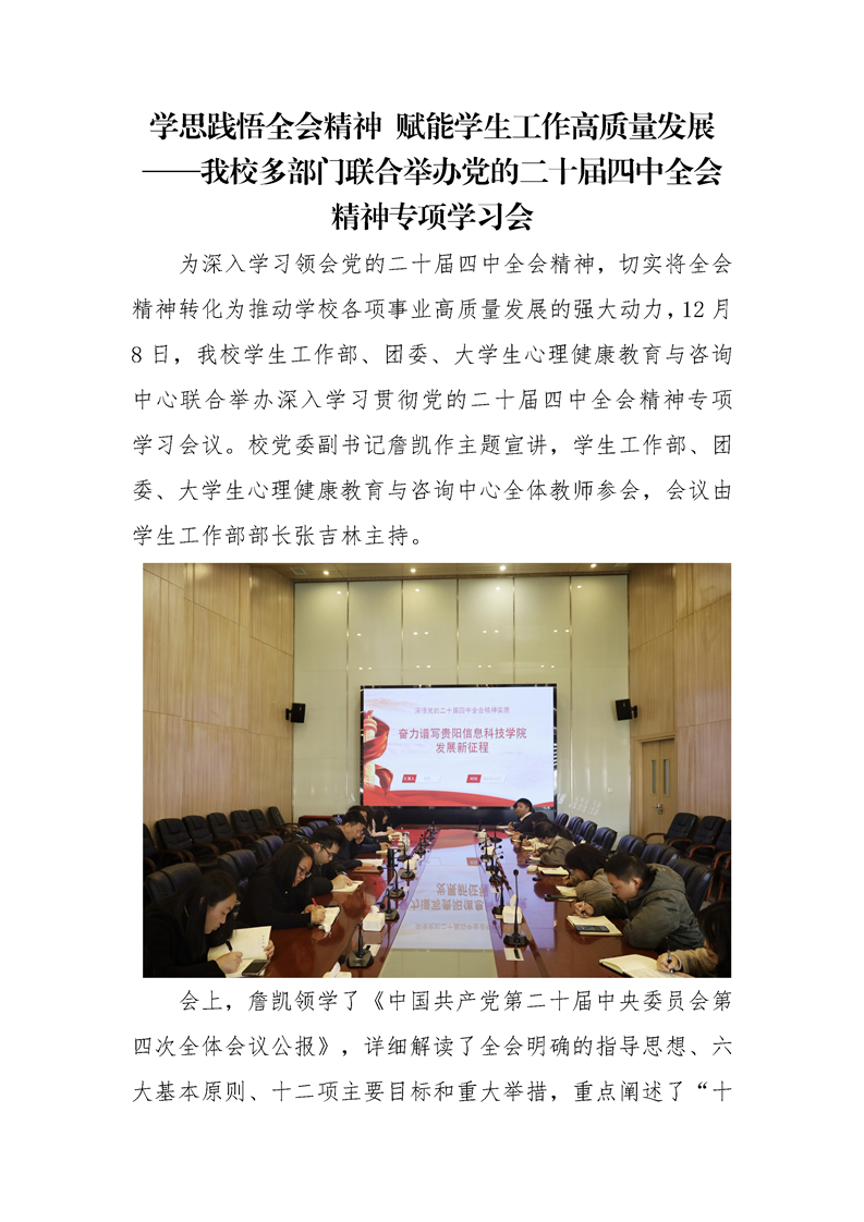 学思践悟全会精神 赋能学生工作高质量发展 ——pp电子多部门联合举办党的二十届四中全会精神专项学习会