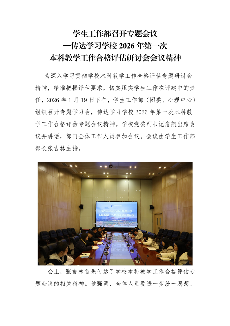 学生工作部召开专题会议传达学习学校2026年第一次本科教学工作合格评估专题会议精神