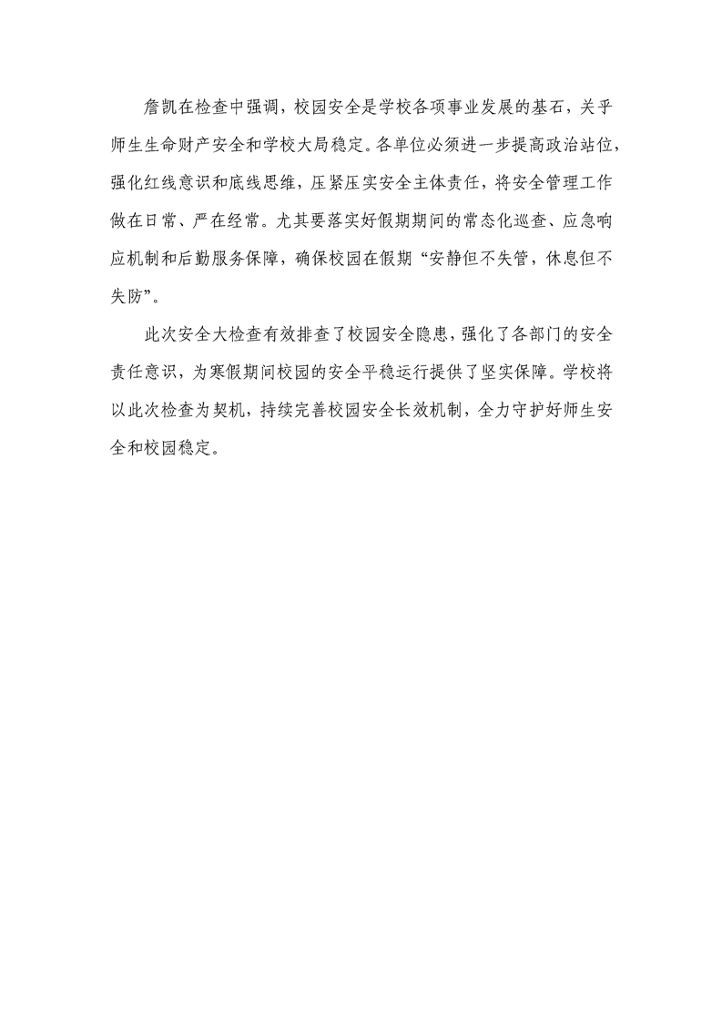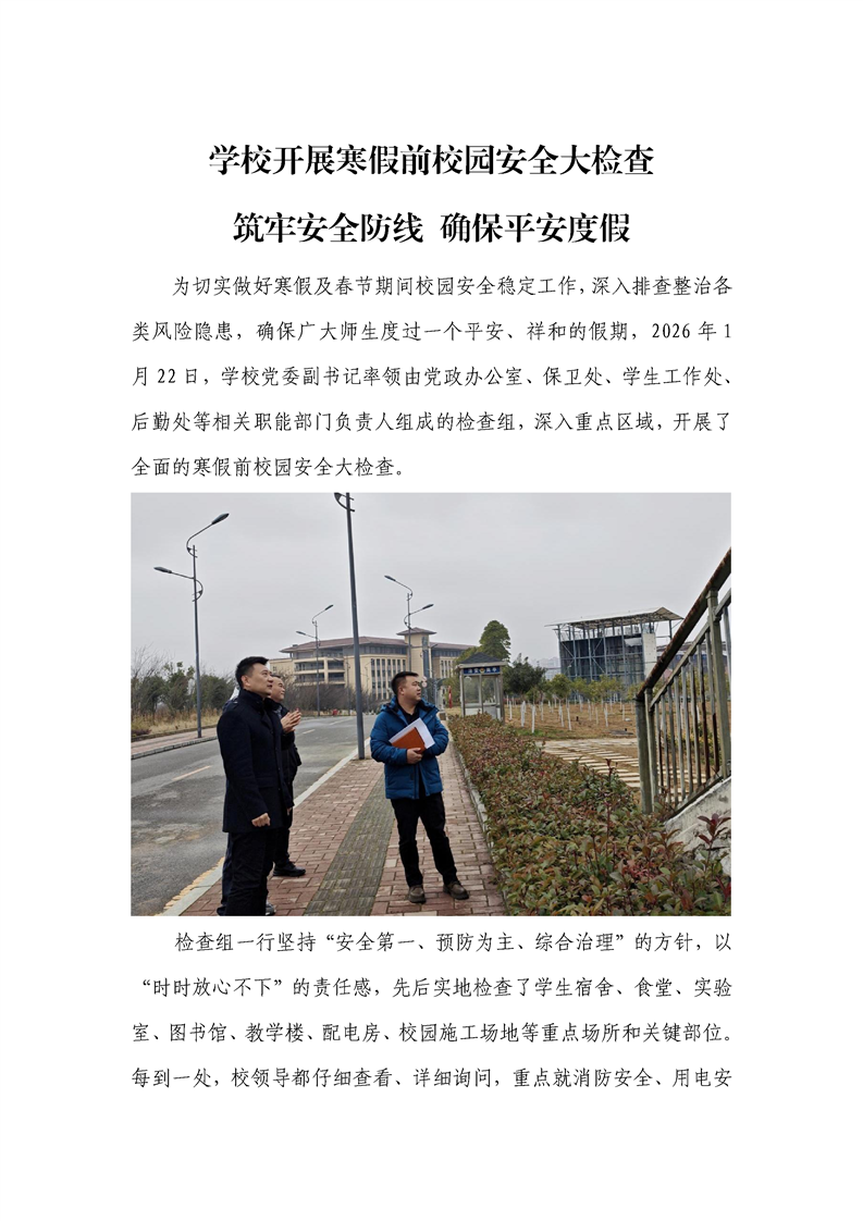 学校开展寒假前校园安全大检查——筑牢安全防线确保平安度假