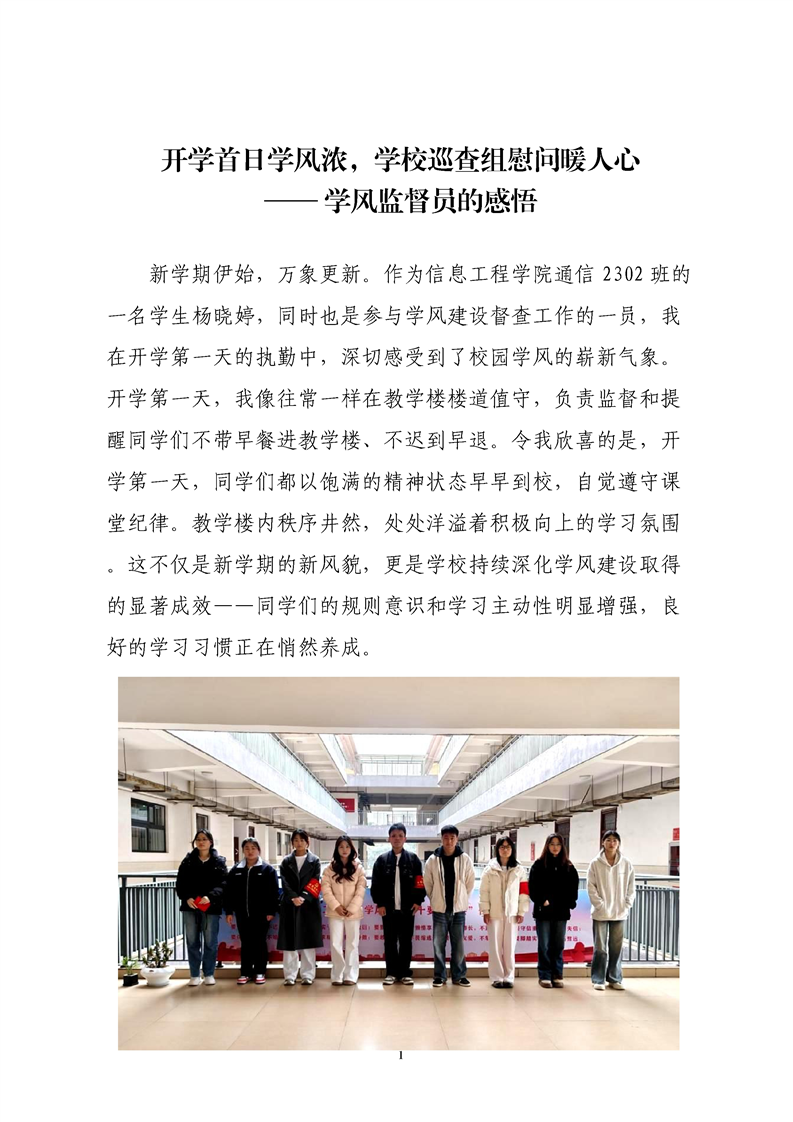 开学首日学风浓,学校巡查组慰问暖人心 —— 学风监督员的感悟
