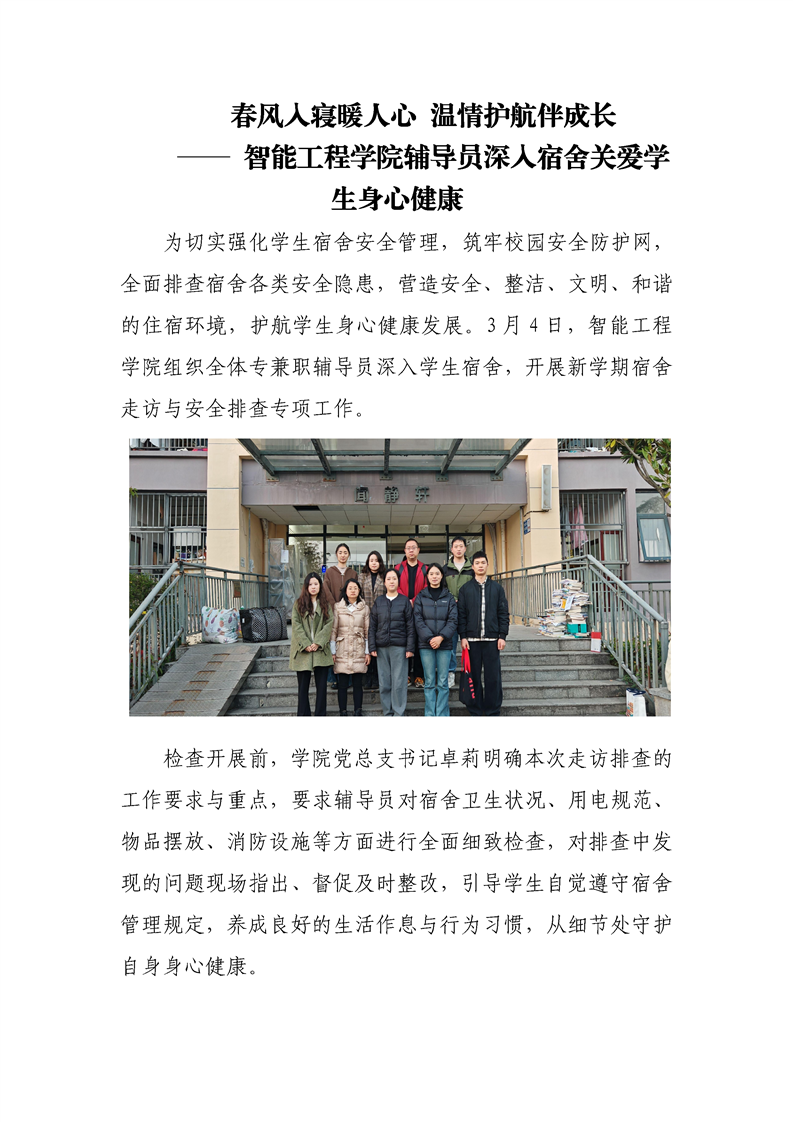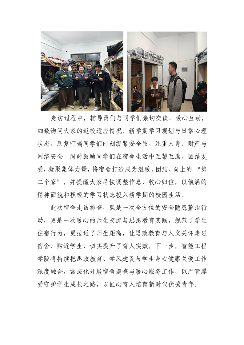 春风入寝暖人心 温情护航伴成长 —— 智能工程学院辅导员深入宿舍关爱学生身心健康