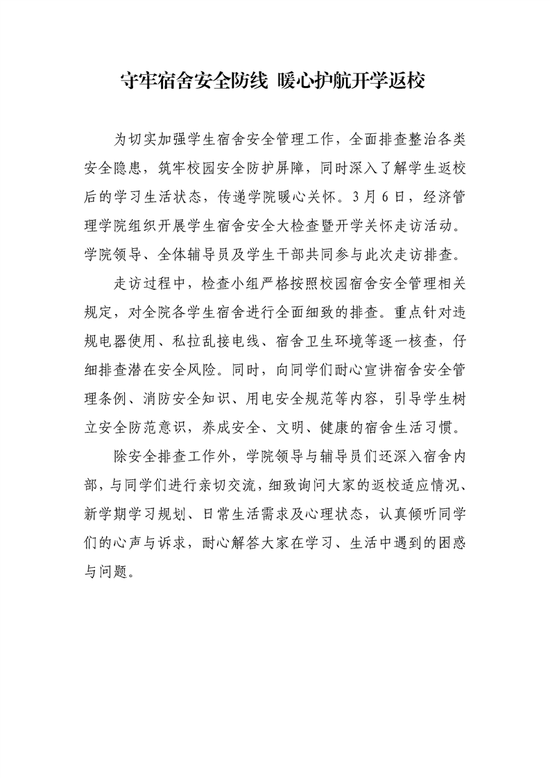 守牢宿舍安全防线 暖心护航开学返校