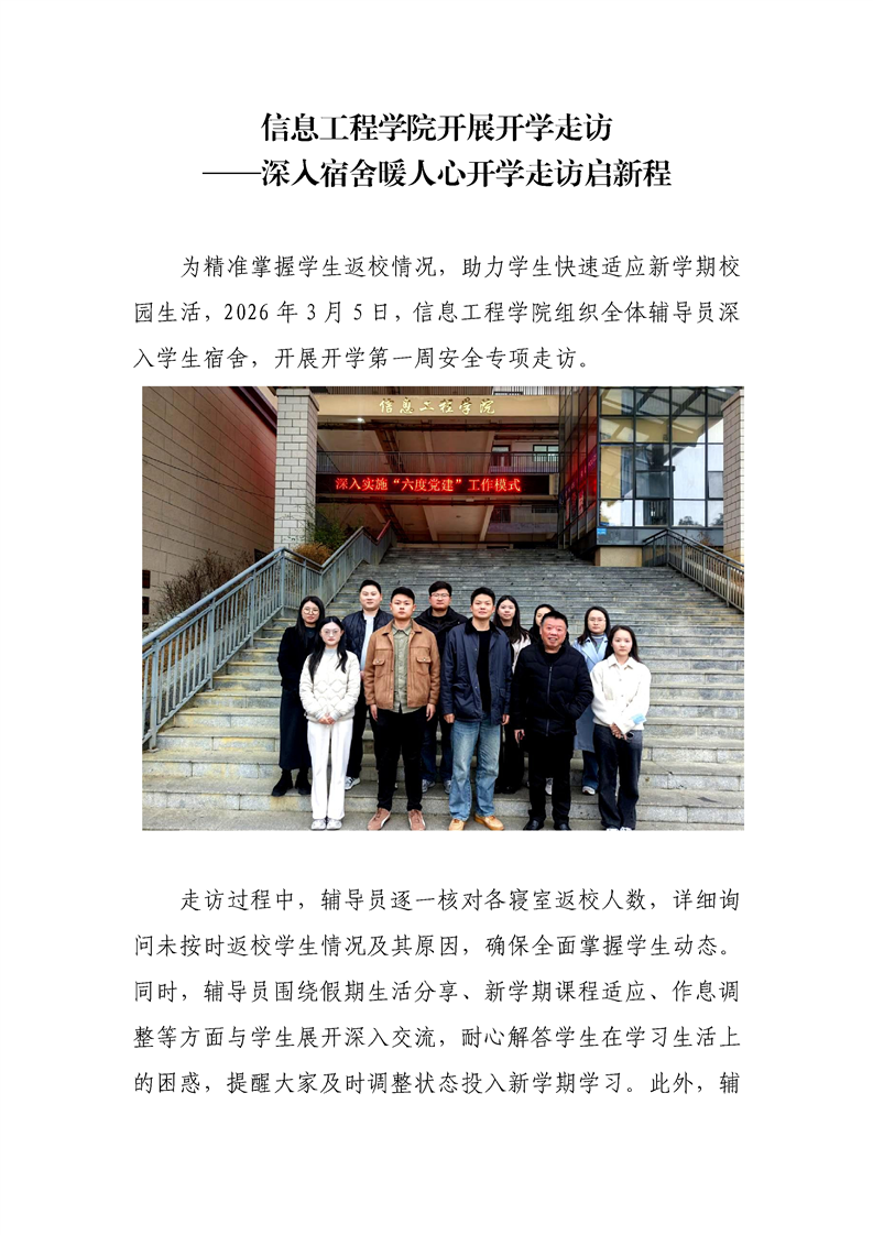信息工程学院开展开学走访 ——深入宿舍暖人心开学走访启新程