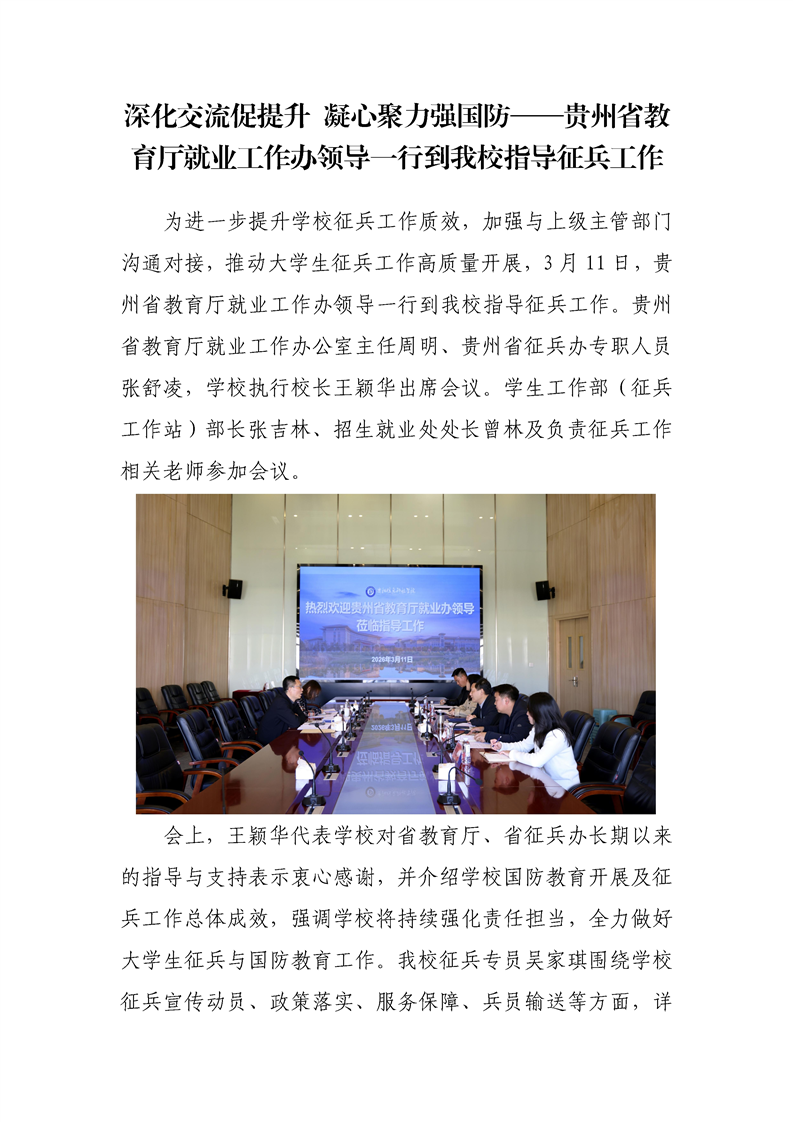深化交流促提升 凝心聚力强国防——贵州省教育厅就业工作办领导一行到pp电子指导征兵工作