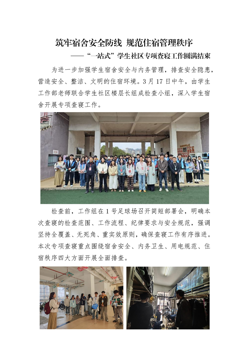 【学生社区】筑牢宿舍安全防线 规范住宿管理秩序 ——“一站式”学生社区专项查寝工作圆满结束