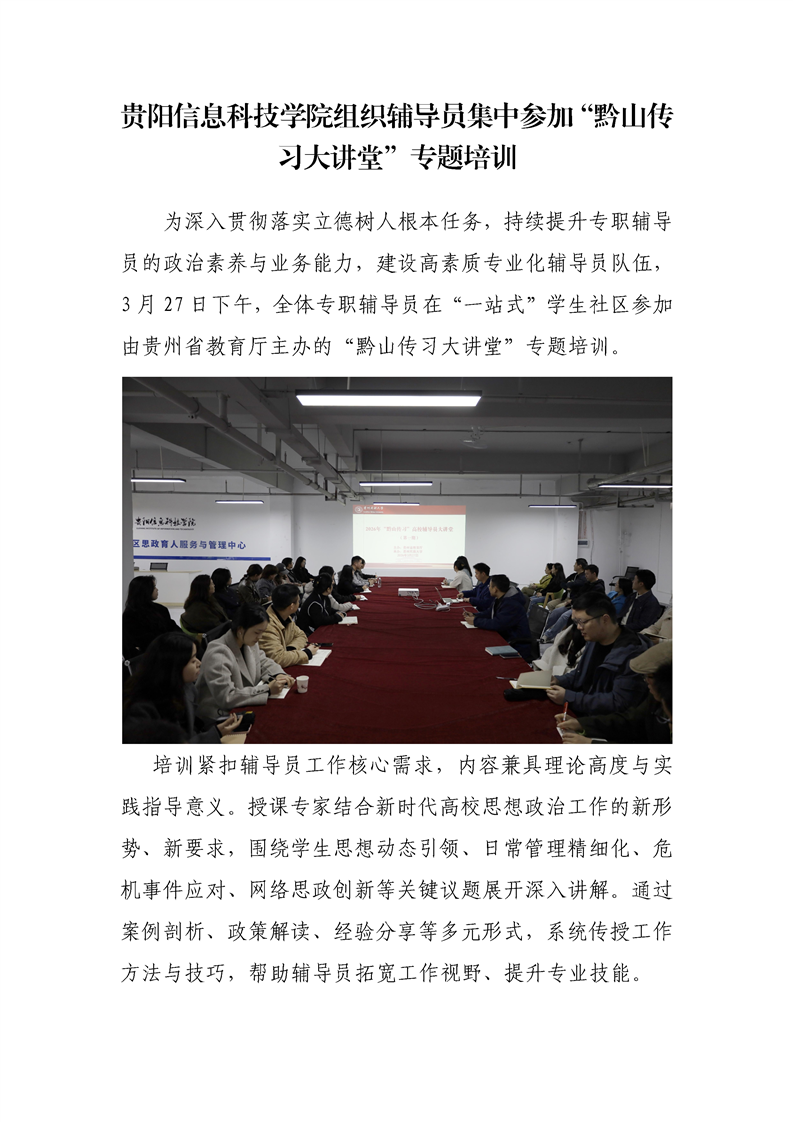 【学生社区】pp电子官方网站组织辅导员集中参加“黔山传习大讲堂”专题培训