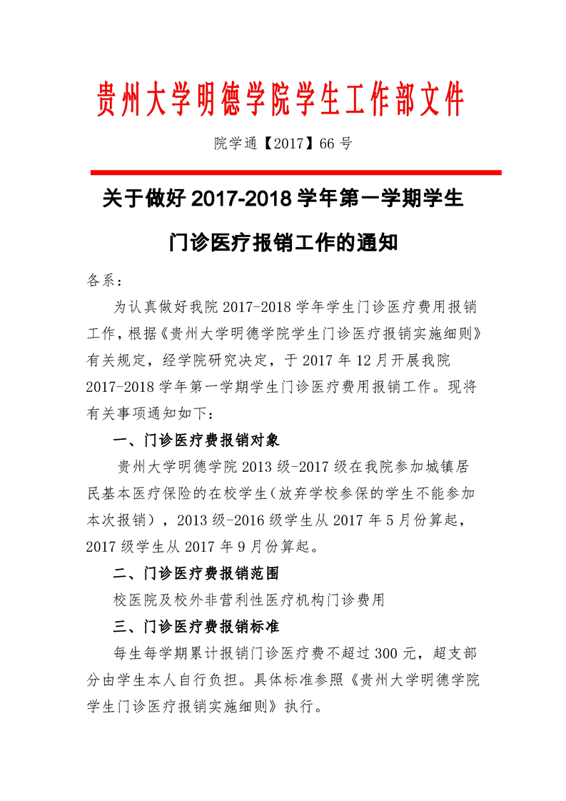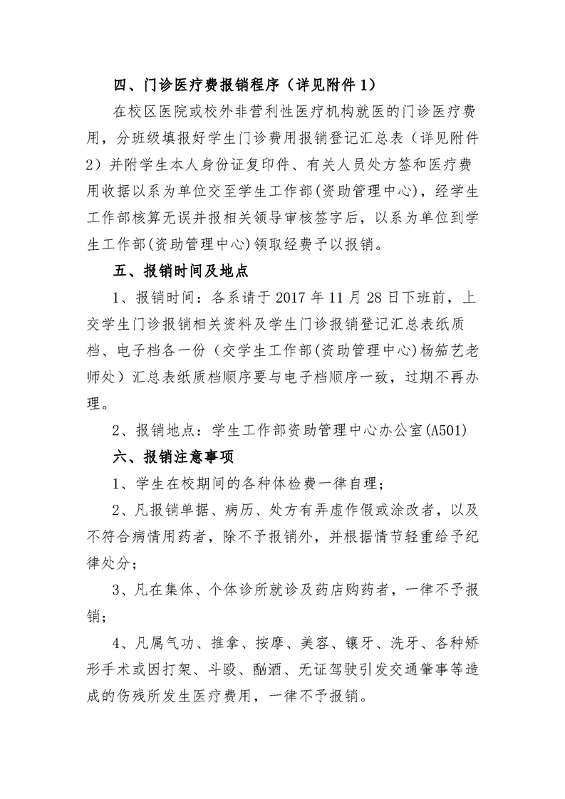 关于做好2017-2018学年第一学期学生 门诊医疗报销工作的通知