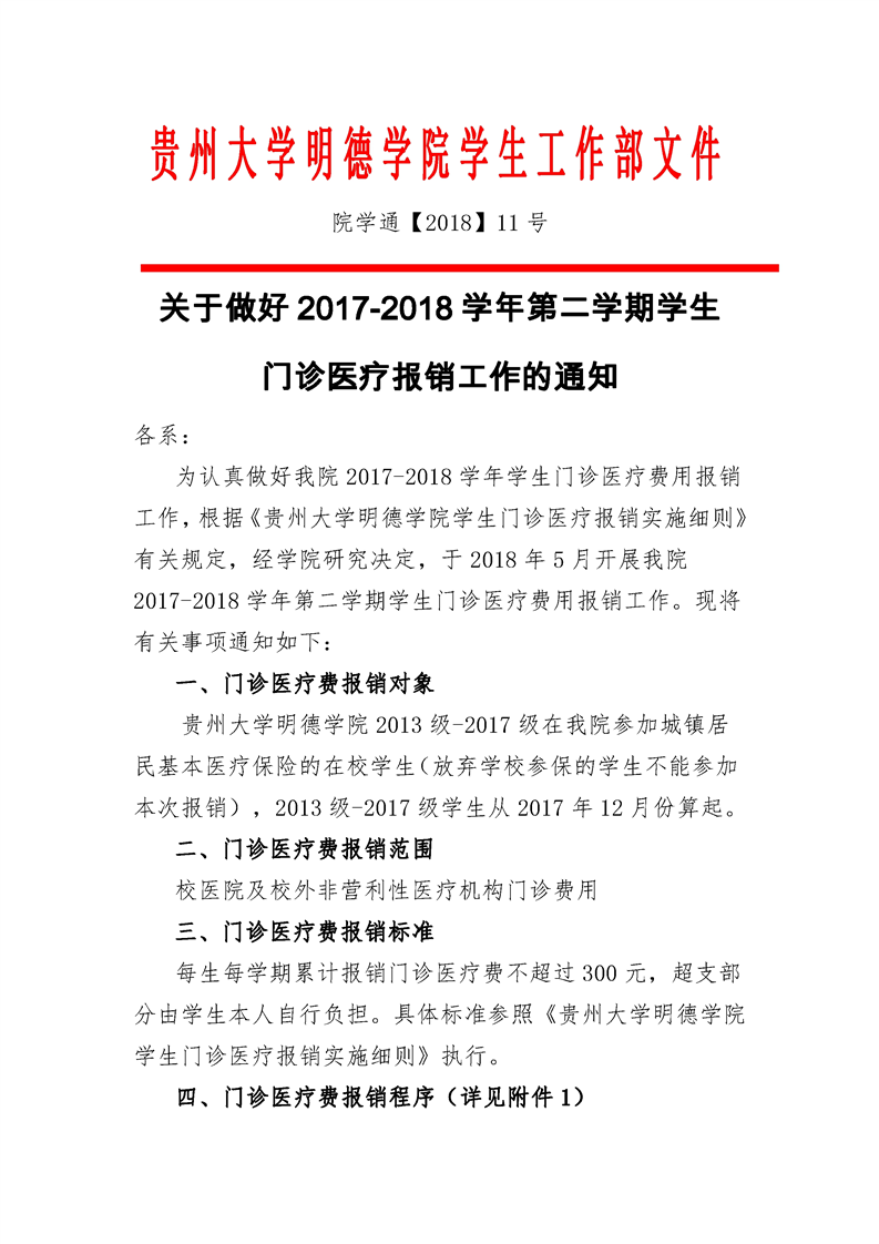 关于做好2017-2018 学年第二学期学生 门诊医疗报销工作的通知