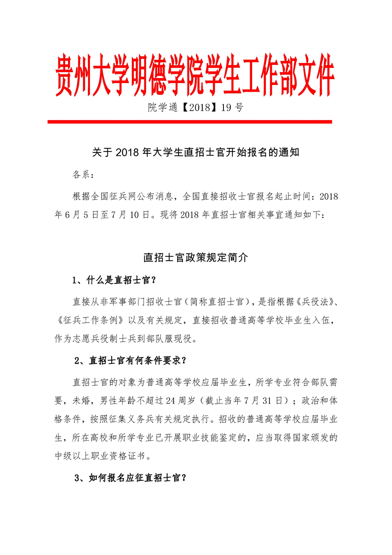 关于2018年大学生直招士官开始报名的通知